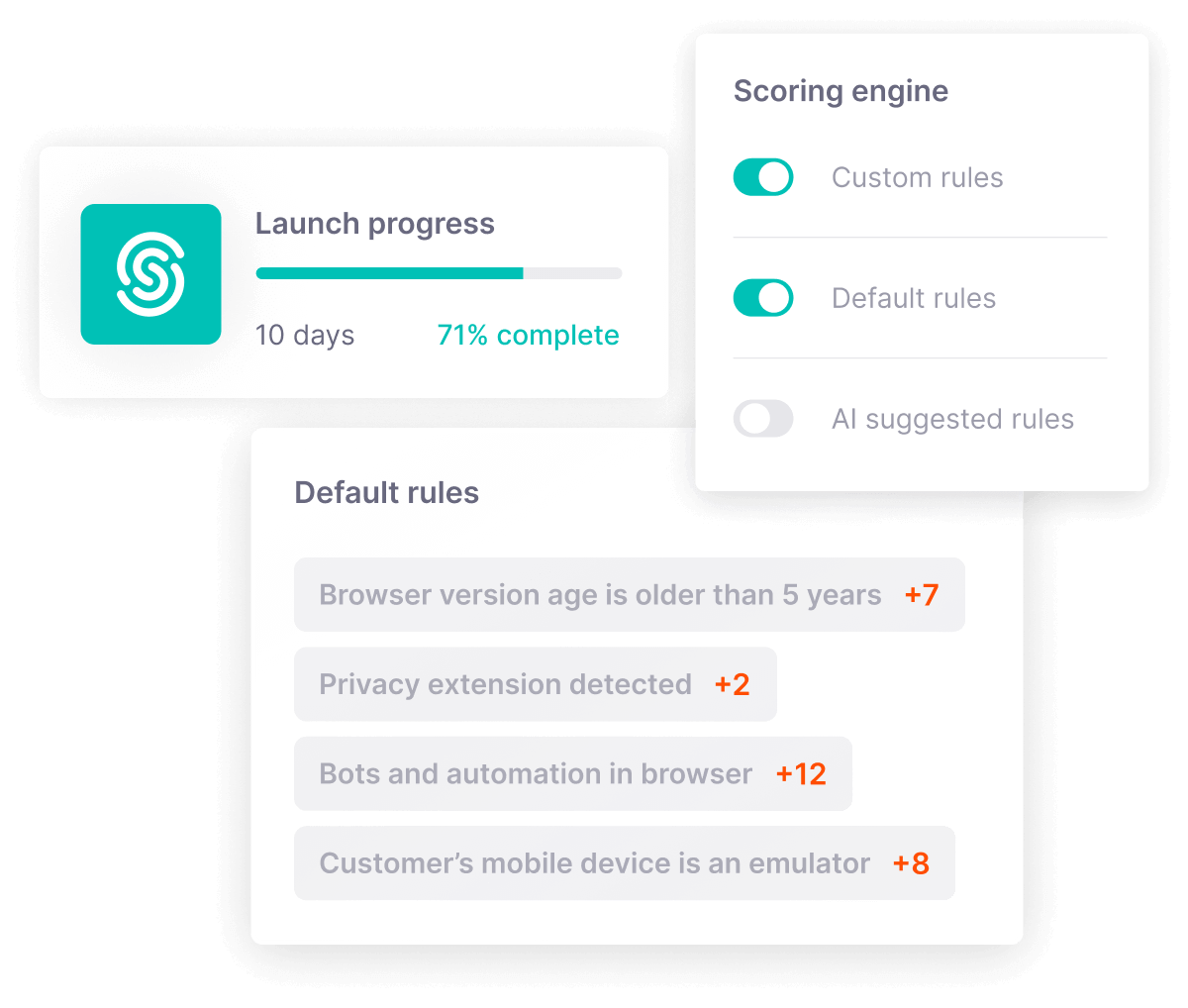 Middleware orchestration tools take months to onboard. The average time to launch and fully operationalize SEON is 14 days. Go live quickly with a single API, ready-to-use rules and hands-on support.