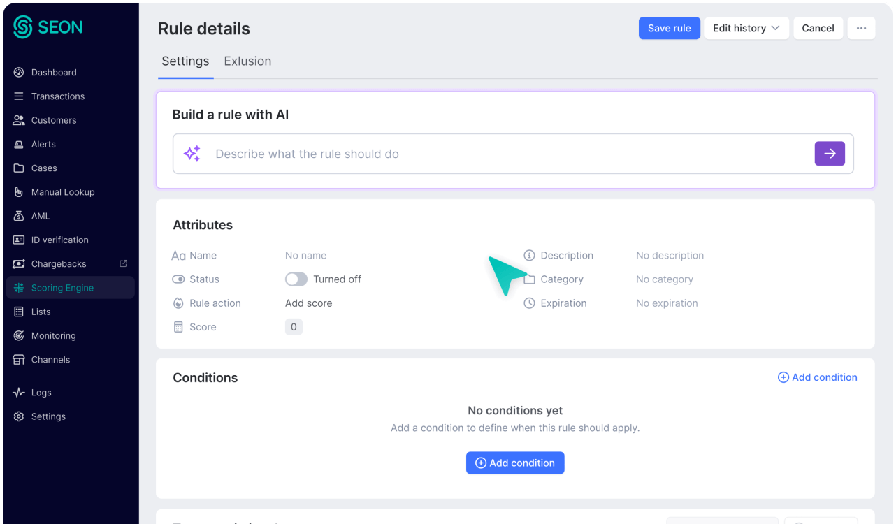 SEON supports every type of analysis fraud teams may choose, from rules-based to AI-driven. Fine-tune risk thresholds and build highly granular rules and alert triggers, with full transparency and zero limitations.