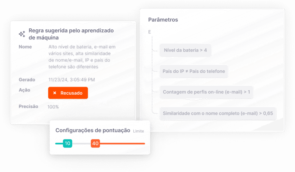 Fornece pontuação em tempo real no ponto de transação usando um mecanismo de regras personalizado e aprendizado de máquina supervisionado para sinalizar atividades suspeitas antes que elas causem prejuízo.