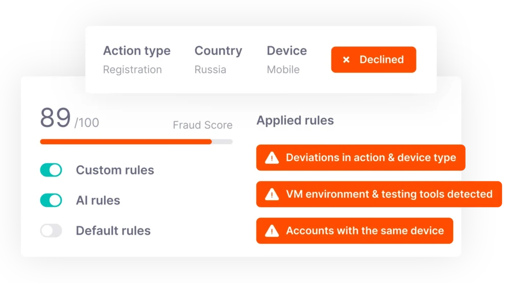 Transparent scoring reveals which signals drive each decision, making outcomes easy to interpret and audit. Automation improves when machine learning and custom rules align with your risk strategy, while connected insights across identities, devices, and histories give analysts the context to resolve cases faster.