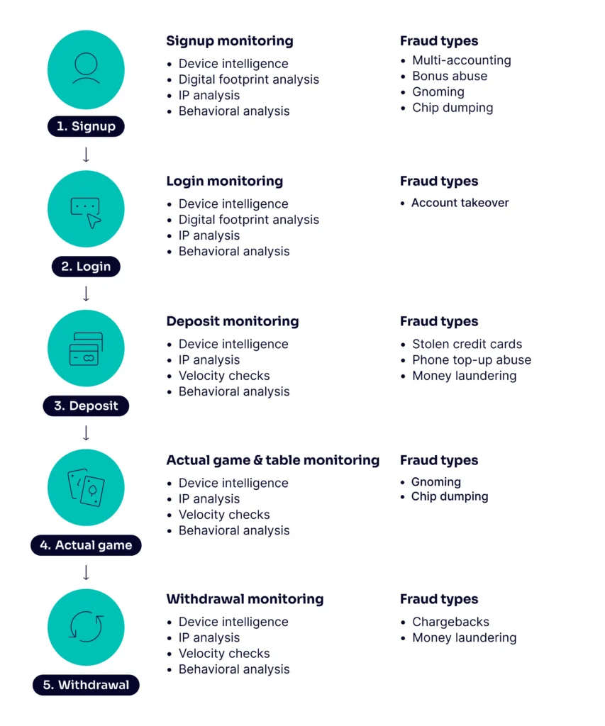 Fraud can occur at any stage of the player journey, making it crucial to have layered detection methods in place.